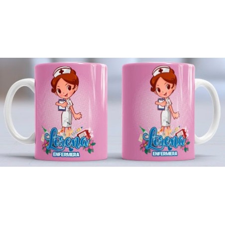 Taza con diseño especial para la profesión de: Enfermera. Personalizable con el nombre.
